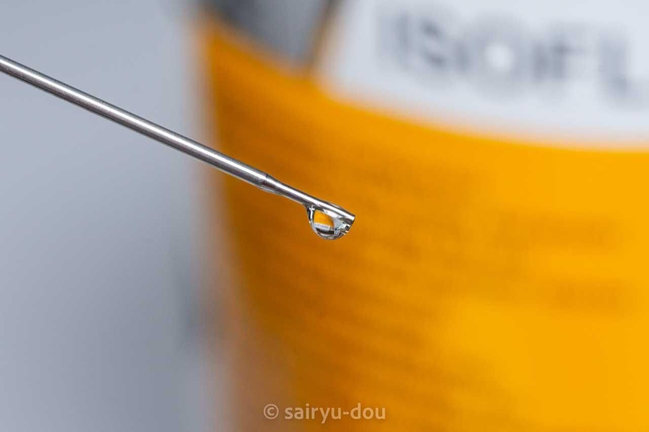 シリンジとニードルのセットです。容器のキャップを開けて適量を吸い取ってお使いください